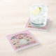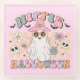 Niedlicher, farbenfroher Hippie Halloween Untersetzer mit einem Hippie-Geist mit rosa Hexenhut, Text, der Hippie Halloween, und ein paar Blume und kleine Fledermäuse und Schädel in Lavendel, Melon, Aqua, und Rosa!