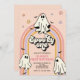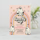 Ein wunderschöner! Retro Groovy Ghost Hippie Halloween Geburtstagsfeier Einladung. Spooktacular zweiten Geburtstag Bash laden mit Retro Geist, Blume und Fledermäuse ein.