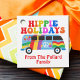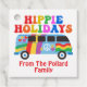Hippie Holidays in niedlichem Retro 70er Schriftart und lustige Farben über einen Vintagen Van mit Blume und Friedensschildern. Dieses hübsche, farbenfrohe Weihnachtsgeschenk-Tag ist ein großartiges Geschenketikett von jemandem, der die 70er Jahre mag.