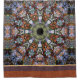 Ein faszinierender Hippie Boho inspirierte ein gemischtes Muster-Design mit einem farbenfrohen, erdigen Kaleidoskop Mandala, das am Boden durch Streifen in goldgelben, Auberginen-lila und Zimtrost begrenzt wurde. Die farbigen Banner haben ein grafisches digitales Einbruchmuster.