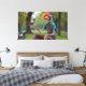 Dieses lebendige Leinwand-Gemälde besticht durch ein sorgloses Hippie-Skelett, das in einem Park sitzt und zwei Tauben füttre. Das Skelett mit farbenfrohen Haaren, einem zarten Kopfband und einer geschmackvollen Hose strahlt Retrovibes aus. Der T - Shirt mit pazifischem Symbol verkörpert Frieden und Harmonie, während die lebhaften Farben und die spielerische Komposition den Geist der Freude, der Freiheit und der Verbindung zur Natur feiern.
