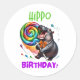 Hippo Birthday fröhlich, farbenfroh Candy Swirl | Runder Aufkleber