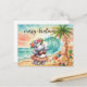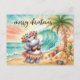 Celebrate the holidays island-style with this cheerful watercolor greeting card. It features a happy hippo wearing a Hawaiian haku lei (flower crown) and a hula dress, enjoying a sunny beach Christmas surrounded by tropical decorations. The soft watercolor tones and coastal warmth bring a fun, relaxing twist to the season. Perfect for anyone who loves Hawaii, beach holidays, or lighthearted tropical Christmas vibes.