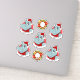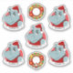 Set von sieben Vinyl-Aufklebern mit einer Abbildung eines glücklichen lächelnden Nilpopotamus mit einem Weihnachtshut auf rotem Hintergrund; fünf Aufkleber des Hippo und zwei Aufkleber mit einem Weihnachtskranz; mit einer anpassbaren Textvorlage für Ihren Namen oder Ihre Nachricht
