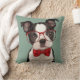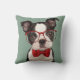 Niedliche Illustration Gläser eines der tragenden Auges des Hipsterartboston-Terrierwelpen und der roten Bogen-Krawatte des Chic auf blauem Hintergrund. Entworfen durch Maryline Cazenave.