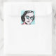 Diese Hipster Chic Retro Pop Art Aufkleber haben eine Frau mit roten und weißen Polka Punkten. Das gekochte Haar, die Perlenhalskette und die schwarz gerippte Brille verleihen ihr eine autoritative Luft. Die Frau ist auf einem Aqua- und weißen Polka-Punkt-Hintergrund. Sie sind Hipster chic, Baby!