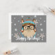 Festliche Weihnachtsgestaltung mit Hipster Llama mit Gläsern und Wintermützen für den Urlaub! Snowflake Hintergrund mit weißem, anpassbarem Text "Happy Holidays"