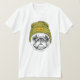 Dieses Ausrüstungsbeschreibungen ein Porträt eines Mops in einer coolen Winterkappe.