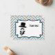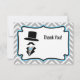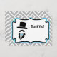 Ein Dankeschön, um das Hipster Schnurrbart kleine Mann Baby Dusche. Mit einer Touch von whimsical und unterhaltsam, ist es ein einfaches Design, um den scharfen Look eines Gentleman, der einen Tophut, einen lockigen Schnurrbart und eine Tuxedo-Jacke mit einer Bogen-Krawatte umfasst, zu Kontur. Der Hintergrund ist das klassische, elegante, Zickzack Zickzackmuster. Klassische Farben wie Grau, Schwarz, Weiß und Blau, die perfekt für diesen kleinen Mann sind.