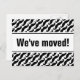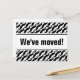 Hipster verschieben Postkarten mit schwarzem Schnurrbart. Benutzerdefinierter Bewegungstext; Wir sind umgezogen! Fügen Sie Ihre neue Adresse auf der Rückseite ein. Moderne neue Hauskarten für Zuhause und Business.