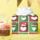 Hipster-Weihnachtsmannmütze und Bart-Verpackungs-Papier. Die Aufmachung einer Farbe blockierte Hintergrund in Grünem und in Rot den populären Bart und den Hut von Weihnachtsmann in den verschiedenen Arten weg zeigend. Ein ursprünglicher Entwurf für die Verpackung Ihrer Geschenke Ihren geliebten zu, zu Kunden, zu Kunden oder zu Angestellten.