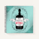 Cooles Notizbuch mit handgezeichneter Weinflasche im Stil eines Hipsters mit Lorbeeren, halftone und farbenfroher Note, ideal für einen Weinberg oder eine Weinzeitschrift, hausgemachte Weinrezepte und -techniken, Speisen- und Weinpflegerezepte und vieles mehr.