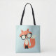Entzückende vektorillustration eines niedlichen roten Fuchses, der ein übergroßes Paar Lesegläser auf einem tadellosen grünen Hintergrund trägt. Fügen Sie einen Namen oder ein Monogramm für ein einzigartiges Geschenk hinzu.