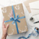 Hirschdruck Weihnachtsverpackungspapier mit einem Druck des braunen Papiers des Imitats und weißen einem Hirschrotwild. Sehen Sie bitte, dass die Knoten u. die Küsse für zusammenpassende Weihnachtskarten kaufen.