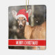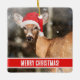 Hirsch mit Weihnachtshut im Schneekastikum Keramikornament