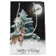 Hirsche und Weihnachtsmann im Schlitten auf Vollmond mit Happy Holidays Text und Snowflake Overlay. Die Himmelfarbe kann geändert werden. Text ist bearbeitbar.