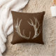 Hirschgeweihe dekorativ werfen Kissen in Schokoladenbraun. Holz-thematische Wohngestaltung mit großem Set Ankerbild auf beiden Seiten von quadratischen Kissen, die in zwei Größen kommen. Wählen Sie Innen- oder Außengewebe, mit Reißverschluss oder ohne.