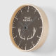 Eine braune Wanduhr mit einer Reh-Antlers-Illustration und einem vollständig anpassbaren Text: "Wilde Natur" im rustikalen Stil! Bringen Sie eine Touch Wildtierwelt in Ihre Zuhause-Dekoration.