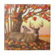 Ein weißer Buck und ruhen auf einem sonnigen Hügel unter einem Ahornbaum. Helle Blätter in Rot-, Orange- und Goldfarben schaffen eine wunderschöne Herbstszene. Realistische Kunstwerke, die aus einem Originalgemälde des Künstlers Crista S. Forest und der Tierwelt entstanden sind.
