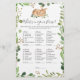Die Babydusche zum Thema Hirsche, die in Ihrer Geldbeutel-Spielkarte enthalten ist, ist mit einer Aquarellzeichnung für Hirsche und einer Aquarellgarage für Eukalyptusblüten sowie einem handgeschriebenen Schriftart ausgestattet.