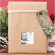 Weihnachten bis und von Sticker Geschenkmarke. Eine ruhige Tageslandschaft, in der die Naturwunder lebendig werden. Inmitten von schneebedeckten Wäldern, majestätischen Bergen und einem friedlichen Seeufer verleiht ein anmutiges Reh der Landschaft eine magische Touch.