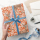 Hirsche auf dekorativen Eichenfeuermustern in dunk Geschenkpapier