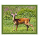 Ein junger Buck in einem Feld hat den Fotografen bemerkt. Lila Loosestrife-Blume fügen dem Hintergrund Farbe hinzu.