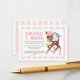 Hirsche bringen ein Buch anstelle einer Babydusche mit der Einsteckkarte.