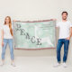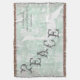 Der hellblaue Hintergrund mit vielen hübschen weißen Schneeflocken, extravagantem, grauem Text, der "Peace" lautet, und einem Silhouette-Weißen Reh! Kleinerer grauer Text lautet "...und auf Erden Frieden und guten Willen gegenüber den Menschen." Dieser hübsche Urlaubwurf ist ein tolles Geschenk für sich selbst oder jemanden, den Sie Liebe haben und wird Teil Ihrer Weihnachtstradition werden!
