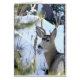 Ein wunderschöner Buchhirsch umgeben von einer schneebedeckten Landschaft.