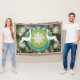 Die wunderschöne Weihnachtsdecke bietet einen Nachthimmel mit bunten kleinen Sternen, immergrünen Bäumen, weißen Schneeflocken, einen aquamarinen Ring mit einigen weißen Schneeflocken und ein Zentrum von Grün mit winzigen weißen Polka-Punkten. Zwei weiße Silhouetten schmücken diesen hübschen Urlaubsknofen und es gibt eine Gegend, die Sie ganz einfach mit Ihrem Familiennamen persönlich gestalten können.