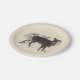 Diese künstlerischen, dekorativen Teller sind mit einem zarten, braunen Weißschwanz-Hirsch ausgestattet, der sich durch den schneebedeckten Winterwald zieht. Sie hat angehalten und sich den Kopf gedreht, weil sie ein Geräusch gehört hat. Ihre großen Ohren sind aufmerksam. Das Gesicht hat weiße Markierungen um Augen und Nase.