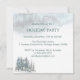 Feiern Sie die Saison mit diesen eleganten Feier-Einladungen. Dieses Design zeigt eine Aquarellbild der Winterwaldszene - Tannen, Blockhütte, zwei Hirsche und Hasen. Sie können Text nach Ihren Wünschen anpassen