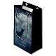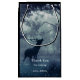 Geschenktasche mit einem Foto eines Regalhirsches mit Geweih stehend in einem schattigen Wald unter sonnenbeleuchteten Bäumen. Rund um den Schnee fallen.