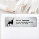 Adressetiketten mit einem Bild mit einem Rentier aus schwarzer Silhouette mit großen Geweih-Zeichen. Grauer Aquarell.