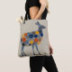 Ein blau-grauer Hirsch mit farbigen Kreise auf dem Körper schafft ein schönes, modernes Design mit asiatischem Einfluss auf diesen Totbeutel.