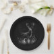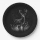 Hirsche mit Geweihen, die von Feld und Baum gerahm Pappteller