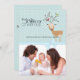 Hirsch mit Birds Weihnachtskarte können Sie mit Ihrem Bild personalisieren. Hellblaue und weiße Polka-Punkte