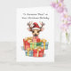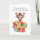 Die Karte zeigt einen charmanten Hirsch inmitten einer köstlichen Auswahl an Geschenken und feiert einen einzigartigen Anlass - einen Geburtstag, der an Weihnachten fällt. Dieses faszinierende Kunstwerk verkörpert die Freude und Spannung eines solchen besonderen Tages, der die Magie der Geburtstage und die Wärme der Festsaison vermischt. Während wir diese Karte mit unseren Lieben teilen, dient sie als herzliche Erinnerung der außergewöhnlichen Momente, in denen die Feiern des Lebens mit dem Weihnachtsgeist verwoben sind.