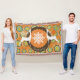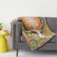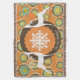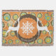 Die schöne Weihnachtsdecke mit Vintag orangefarbenen Orangenbäumen, einem kräftigen dunkelbraunen Ring und einem Orangenzentrum mit winzigen weißen Polka-Punkten und einem großen Schneeflockenzentrum. Zwei Silhouetten Hirsche und hübsche Baumschmuck schmücken diesen skurrilen Urlaubsknofen und es gibt einen Bereich, den Sie mit Ihrem Familiennamen ganz einfach persönlich gestalten können.