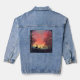 Landszene auf der Rückseite einer Jacke. Schöne Silhouette von 2 Hirschen bei Sonnenuntergang. Eine schöne Dekoration für eine Jacke. Ich hoffe, dir gefällt deine neue Jacke.