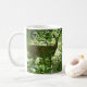 Eine Tasse mit einem Foto Hirsch im Wald