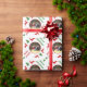 Weihnachtsfest für Hirsche und Baum personalisiertes Foto Wrapping Paper. Es zeigt Hirsche und einen Baum, den Text "Frohe Weihnachten", Ihren Familiennamen und Ihr Foto. Fotografie © Storytree Studios, Stanford, CA