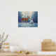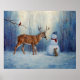 Hirsche und Happy Snowman Winterurlaubslandschaft Poster
