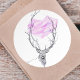 Hirsche und rosa geometrisches Herz zeichnend Tier Runder Aufkleber