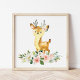 Hirsche, Waldtiere, Boho, rosa Blume Poster