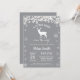 Hirsche Winter Baby Dusche Snowflake Einladung. Weiße Schneeflocke. Einladung zur Kinderdusche. Winter Holiday Baby Dusche einladen. Grauer Hintergrund. Für weitere Anpassungen klicken Sie bitte auf die Schaltfläche "Anpassen" und verwenden Sie unser Designwerkzeug, um diese Vorlage zu ändern.