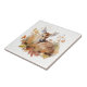 Diese schöne Keramik Kachel hat ein hübsches Herbstbild in Aquarellfarbe, ist aber das ganze Jahr über geeignet. Die gepunktete Hirschblüte, die zwischen den braunen und orangefarbenen Herbstblättern liegt, schmückt das Haus. Das Bild wird auf einem eleganten, weißen Hintergrund platziert.