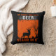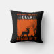 Das Kopfkissen des Designwerfkissens für Hirsche ist mit einer Silhouette Hirsche und Baum auf einem orangefarbenen Hintergrund mit Text versehen, der auf "Mein Baum hat ein Hirschständer" steht! Das ist ein großartiges Geschenk für den Hirschjäger, den Sie kennen.