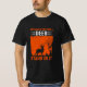 Der T - Shirt der Hirschjagd-Familie hat eine Silhouette Hirsche auf orangefarbenem Hintergrund mit orangefarbenem und weißem Text, der auf "Mein Baum hat einen Hirschständer" steht!